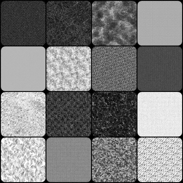 I've created a bunch of seamless textures from scratch and released under Creative Commons Attribution-Share Alike 3.0 Unported License. Actually I use them as pattern in Gimp for the Gimp Paint Studio brushes pack. You can download them from here: (Seamless textures, 512x512 pixels size, png format) http://www.mediafire.com/file/rrkjimylicz/tpack_a_series_512px_part01.zip http://www.mediafire.com/file/i3wqiggy2ny/tpack_a_series_512px_part02.zip http://www.mediafire.com/file/m1mnwmkmedj/tpack_b_series_512px_part01.zip http://www.mediafire.com/file/j0yjjmdzqij/tpack_b_series_512px_part02.zip http://www.mediafire.com/file/rmzznzzjydg/tpack_c_series_512px_part01.zip http://www.mediafire.com/file/bcm1yzmyu2m/tpack_c_series_512px_part02.zip http://www.mediafire.com/file/mjyiy1z2mnm/tpack_d_series_512px_part01.zip http://www.mediafire.com/file/5im22hmmjwj/tpack_d_series_512px_part02.zip For a little preview, please look here: http://www.mediafire.com/imgbnc.php/a6442037c83800c866b81ee47f97c5106g.jpg http://www.mediafire.com/imgbnc.php/fe2791ef85c82b4488f93b9bc404cf986g.jpg http://www.mediafire.com/imgbnc.php/326ec1b5cb9360b3e61c2b2712c44edc6g.jpg http://www.mediafire.com/imgbnc.php/c0f7b296b5cc109774391ac4b4c2de1c6g.jpg http://www.mediafire.com/imgbnc.php/20bb832128a15d00d7f637d026c37fca6g.jpg http://www.mediafire.com/imgbnc.php/47ec33a9aa1c6b79d8660f9c10a2b3006g.jpg http://www.mediafire.com/imgbnc.php/9925be5d1683724a00bf32df130a5a456g.jpg http://www.mediafire.com/imgbnc.php/761ff07eca058a83ccca09f8920132446g.jpg